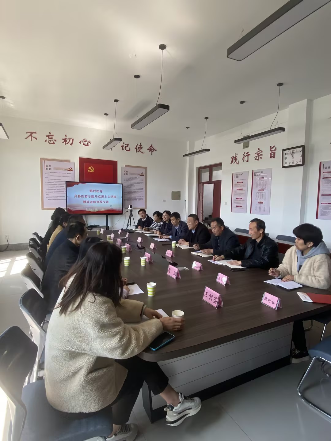4月7日上午,齐鲁医药学院taptap点点体育党支部书记、院长王峰一行到我校开展调研交流。学校党委委员、宣传统战处处长朱连斌、taptap点点体育负责人及相关教师参加座谈。