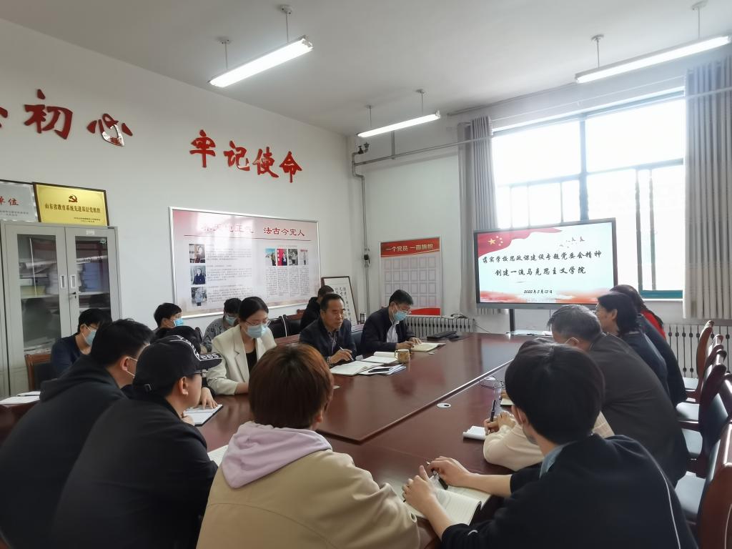 会议第二阶段,院长王荣敏传达了党委会上学校领导们讲话的要点,特别是认真学习了党委书记于军对思政课建设工作的要求。大家讨论认为,学校党委召开思政课专题党委会,本身就是对思政课建设高度重视的具体体现,学校领导提出的各项要求就是下一步每一位思政课教师努力的方向。马院要以政治建设为统领,对标总书记提出的“六要”和“八个统一”的要求,按照学校党委的具体部署,在加强教师队伍建设、确保示范思政部高质量通过验收、加强思政课大中小一体化、突出特色项目等方面重点发力,大力推进思政课改革创新,提升思政课教学实效,打造思政“金课”。